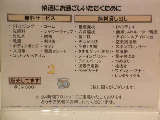 これらはフロントにお声掛け頂きましたら、貸出致しますので、是非お声掛け下さいませ。