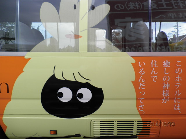 オレンジ色のボディに、いやしろさまはじめマスコットキャラが勢揃いでお出迎えしております。