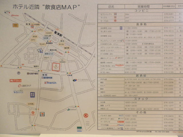 当ホテルでは、フロントにて周辺の飲食店マップを三種類ご用意しております。
