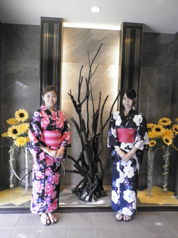 少しでも夏気分を、と思い昨年に続き浴衣でお出迎えしてます。